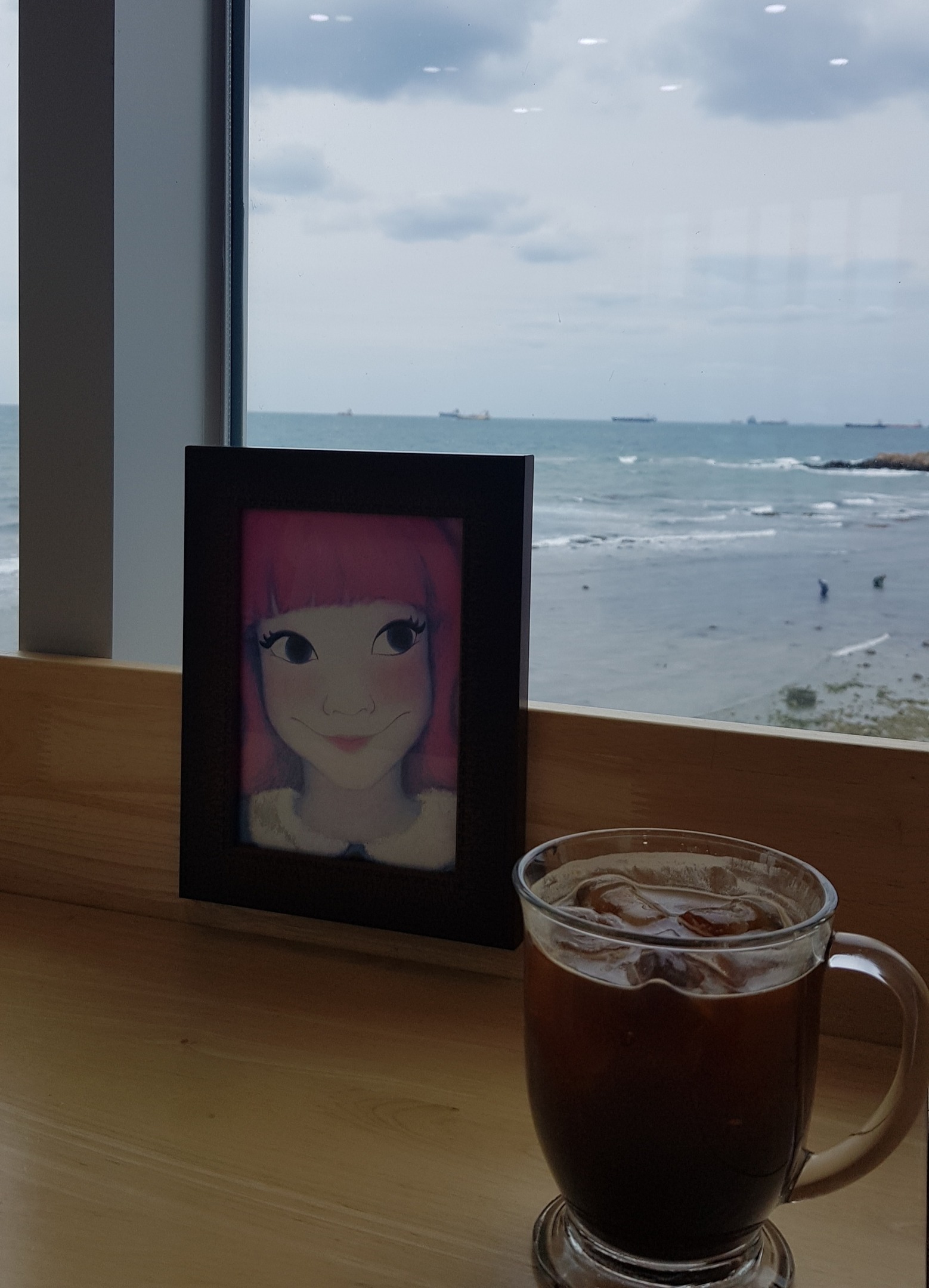 소녀.커피.바다