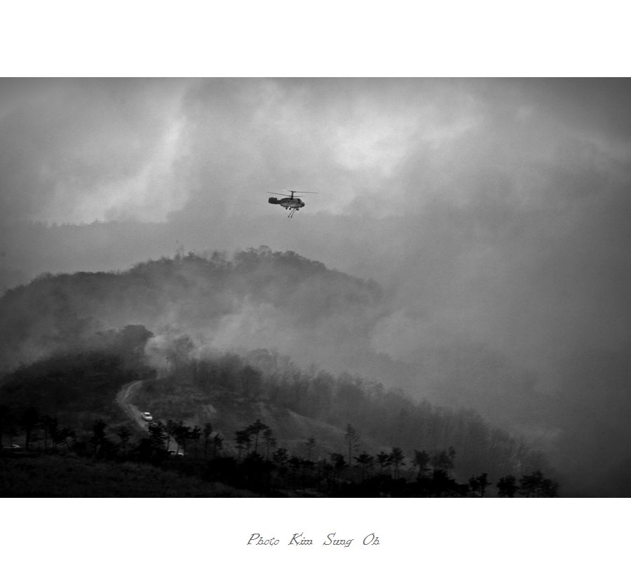 경주 보문호 맞은편 소금강산 화재진압 현장