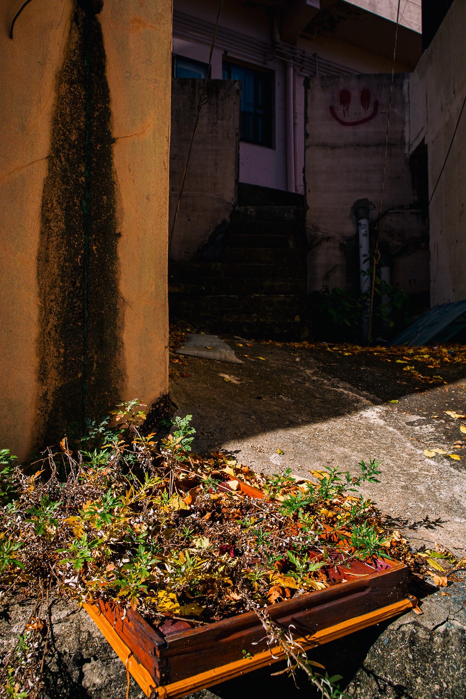 instagram - yoorei https://sobeaut.com/user/yooreimin 사랑하는 풍경 좁고 깊은 골목 무너진 담벼락 녹슨 철제 계단 슬레이트 지붕 길냥이 건물을 뒤덮은 덩굴 사람이 살지 않는 집 깨진 유리창 깊은 밤의 골목
