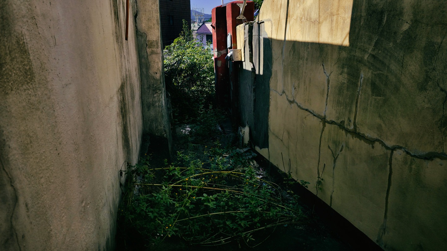 instagram - yoorei https://sobeaut.com/user/yooreimin 좁고 깊은 골목 무너진 담벼락 녹슨 철제 계단 슬레이트 지붕 길냥이 건물을 뒤덮은 덩굴 사람이 떠난 자리 깨진 유리창 깊은 밤의 골목