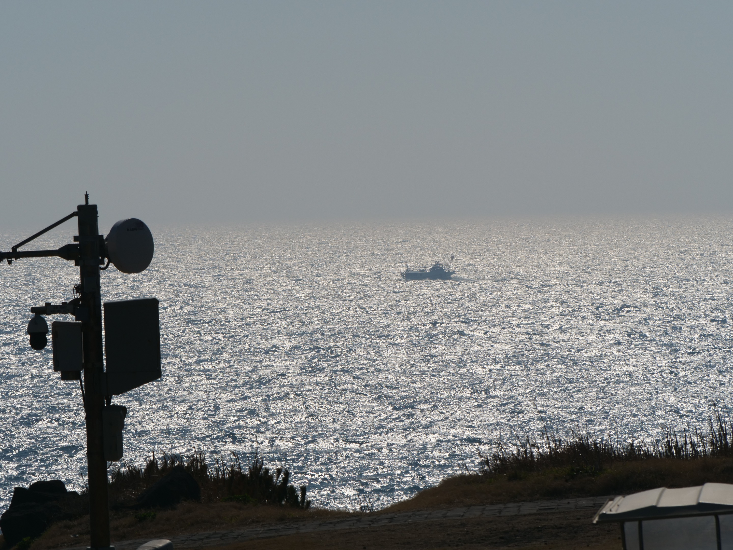 바다와 배가 있는 실루엣